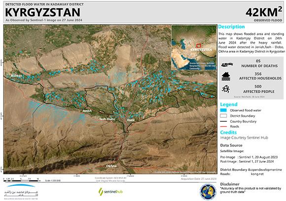 Heavy rainfall affected western Kyrgyzstan triggering floods and landslides that have resulted in casualties and damage. A powerful mudflow hit Jenish village, Kadamjay district, Batken region carrying away a cargo container, numerous cars and blocking the Osh-Batken-Razzakov road.