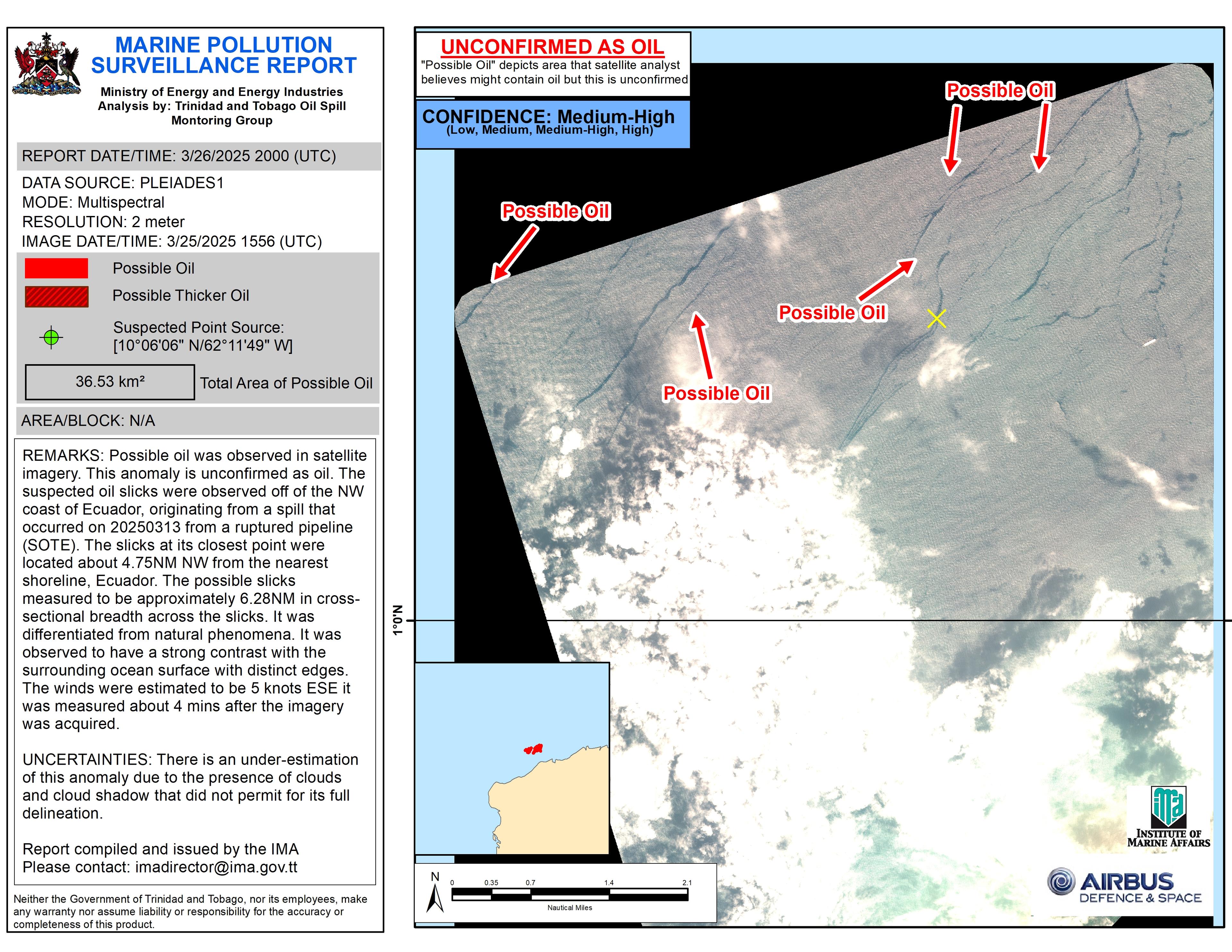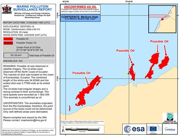 There were concerns that the spill may have reached the sea along the Ecuadorian coastline.